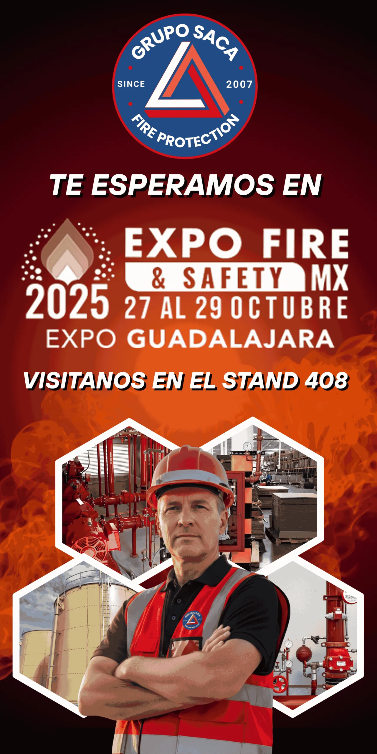 Experiencia: Más de 1,000 inmuebles protegidos, 500 mil rociadores, 10 mil hidrantes, 200 mil dispositivos de A&D, 300 tanques de PCI, 400 equipos de bombeo y 4,000 sistemas para riesgos especiales.
