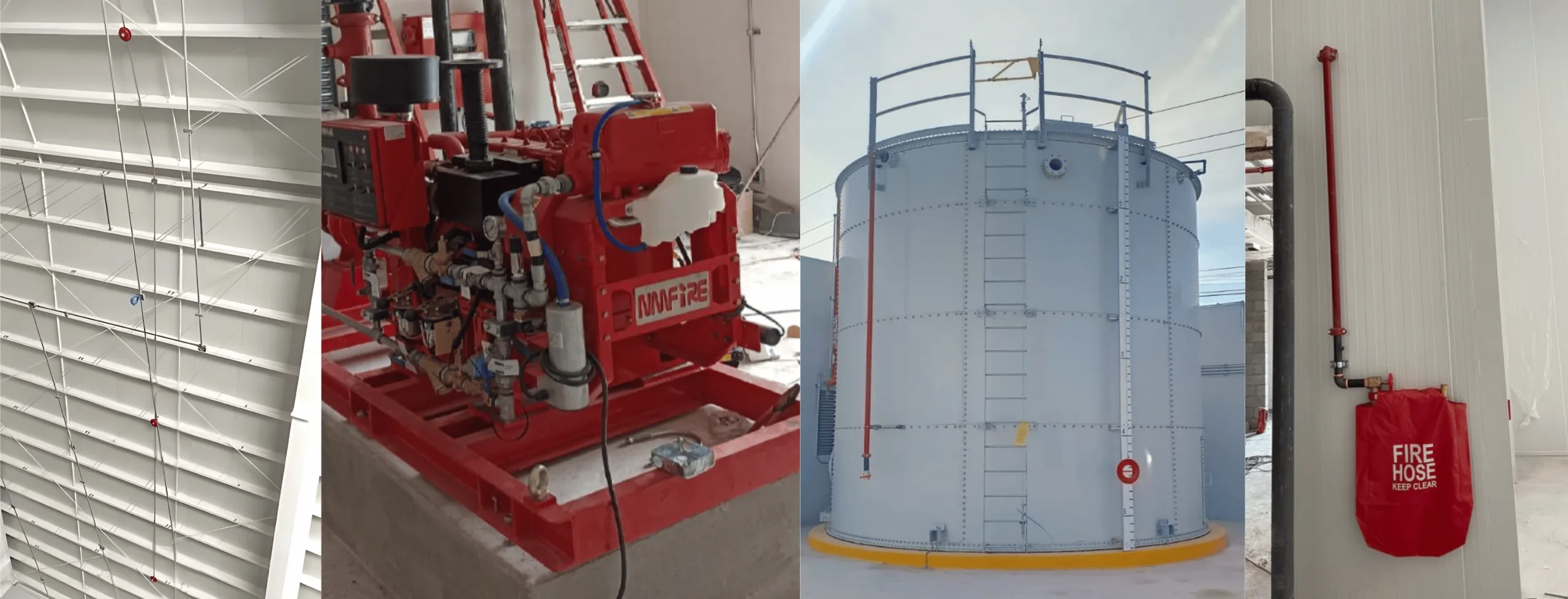 El sistema instalado incluye Hidrantes interiores con mangueras de 1 ½ “, de acuerdo con los estándares de NFPA 14. en área de servicios, proceso, almacenes y oficinas. Adicionalmente instalamos sistema de Bombeo de 250 GPM Diesel, conforme a los estándares de NFPA 20. Posteriormente, instalamos un Tanque con capacidad de almacenaje de 30,000 galones para protección contra incendio, de acuerdo con los estándares de NFPA 22. Finalmente, se instaló un sistema de Alarma y Detección de acuerdo con los estándares de NFPA 72.