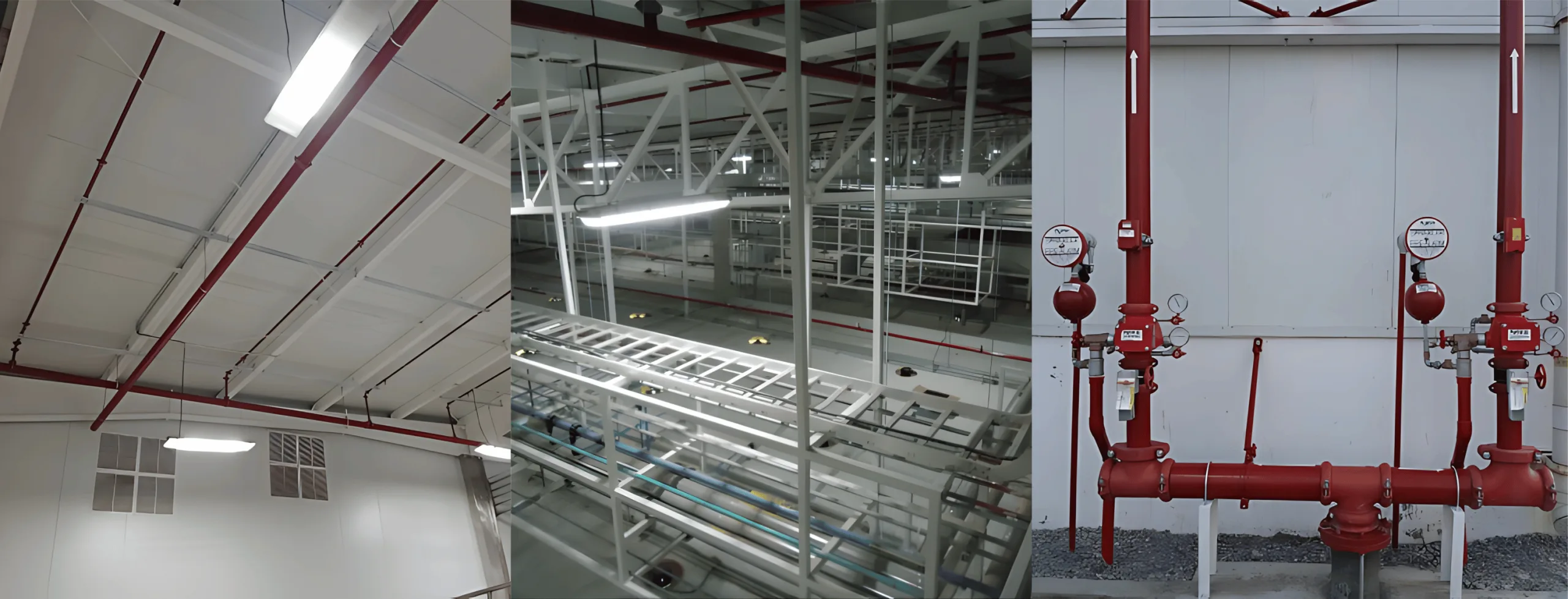 El sistema instalado incluye Rociadores en área de manufactura, Rociadores en área de calderas y Rociadores en área de producto terminado, de acuerdo con los estándares de NFPA 13.
