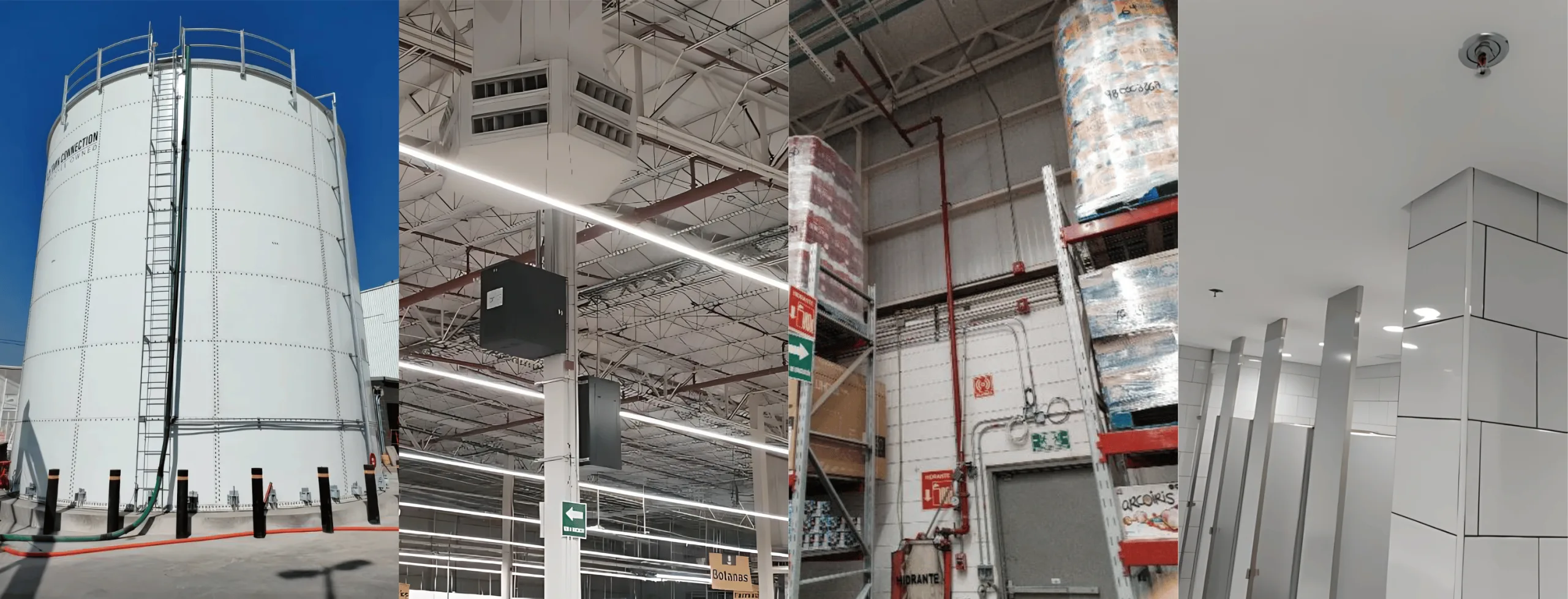 El sistema instalado incluye sistemas de Rociadores en área piso de ventas y trastienda, Rociadores bajo obstrucción, Rociadores en área oficinas generales, Rociadores en área de abarrotes, Rociadores en área cámaras frías y Sistema de pre-acción para proteger la subestación eléctrica, de acuerdo con los estándares de NFPA 13. Por otro lado, se instaló una Red de Hidrantes interiores con mangueras de 1 ½” y tomas siamesas, de acuerdo con los estándares de NFPA 14. Adicionalmente instalamos un sistema de Bombeo de 2,000 GPM diésel, eléctrica y jockey, conforme a los estándares de NFPA 20. Posteriormente, instalamos un Tanque atornillable para almacenamiento de contra incendio, con capacidad de almacenaje de 200,000 galones, de acuerdo con los estándares de NFPA 22. Finalmente, se instaló un sistema de Alarma y Detección de acuerdo con los estándares de NFPA 72.