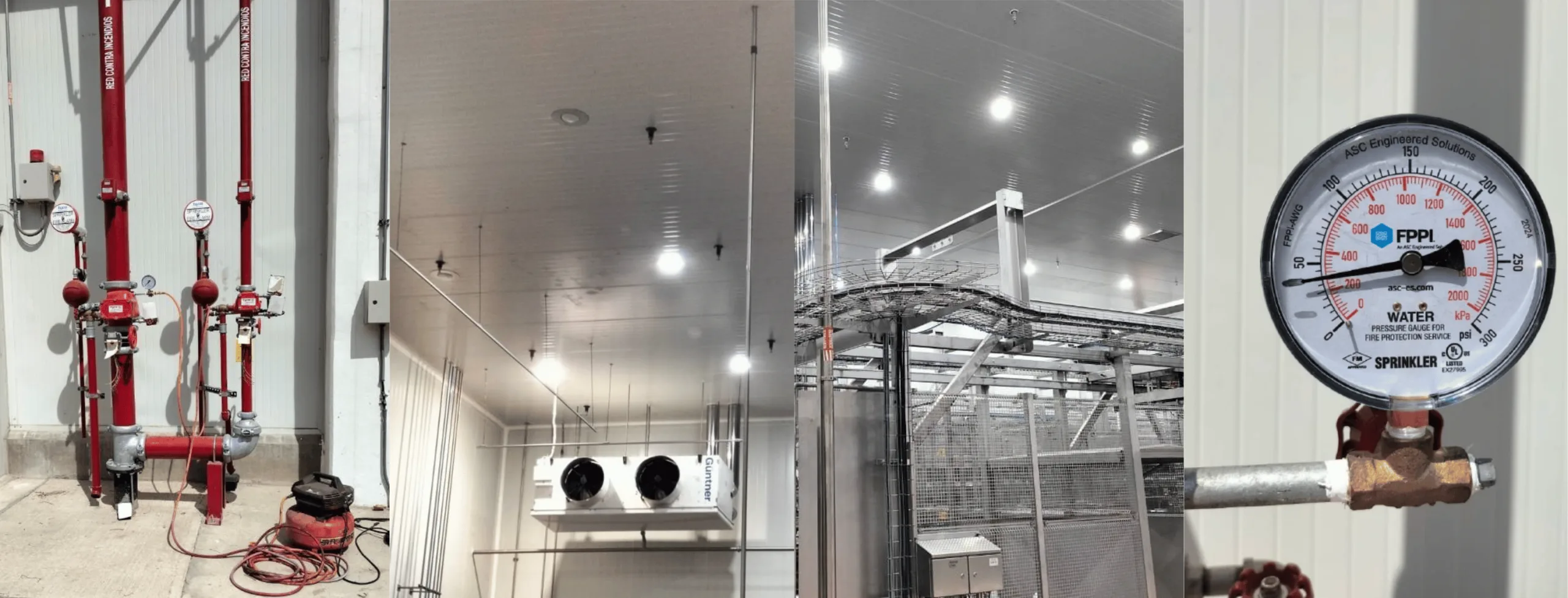 El sistema instalado incluye Rociadores en área de proceso de acuerdo con los estándares de NFPA 13. Adicionalmente se instaló una Red de Hidrantes interiores con mangueras de 1 ½ “, de acuerdo con los estándares de NFPA 14.